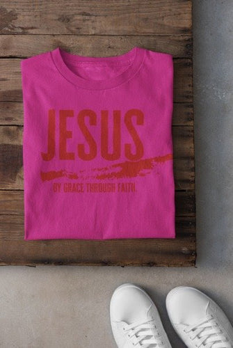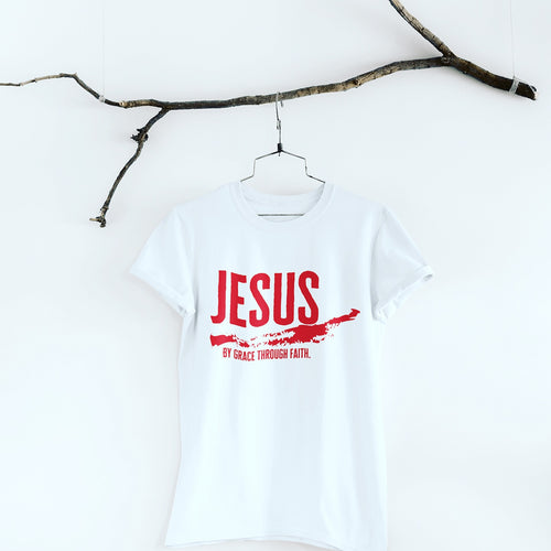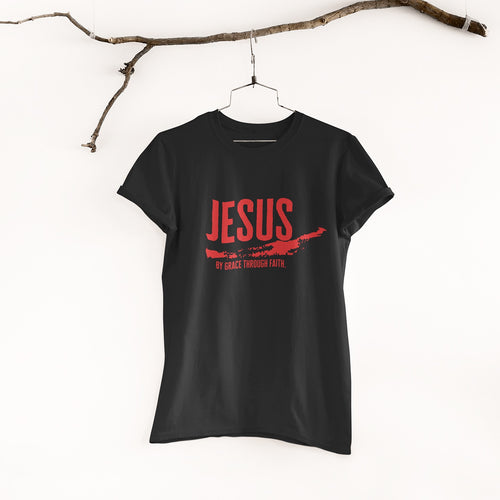"Saved by Grace" Ladies Tee (CAYENNE)