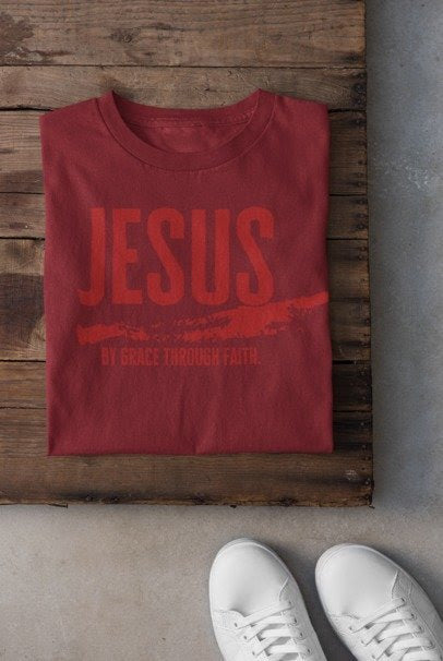 "Saved by Grace" Ladies Tee (CAYENNE)